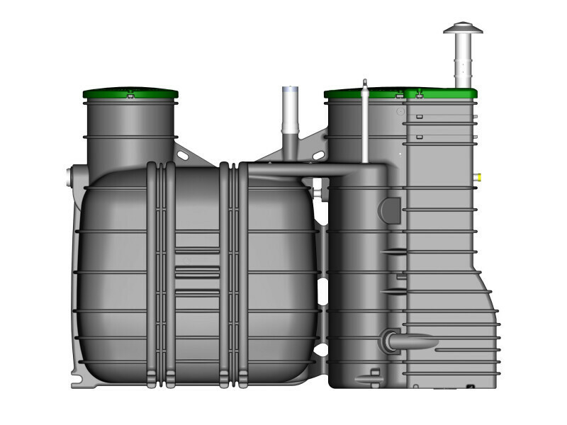 Dacă apa tratată urmează să fie evacuată la un nivel superior, sistemului MONOBLOCK i se atașează un modul de pompare integrat (cameră de pompare cu pompa cu flotor) special proiectat în acest scop.